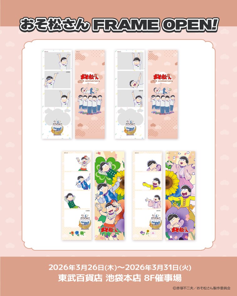 『おそ松さん』の世界観と「人生4カット」が融合した、この機会だけの特別な体験をぜひお楽しみください。推しと一緒に、あなただけの一枚を。